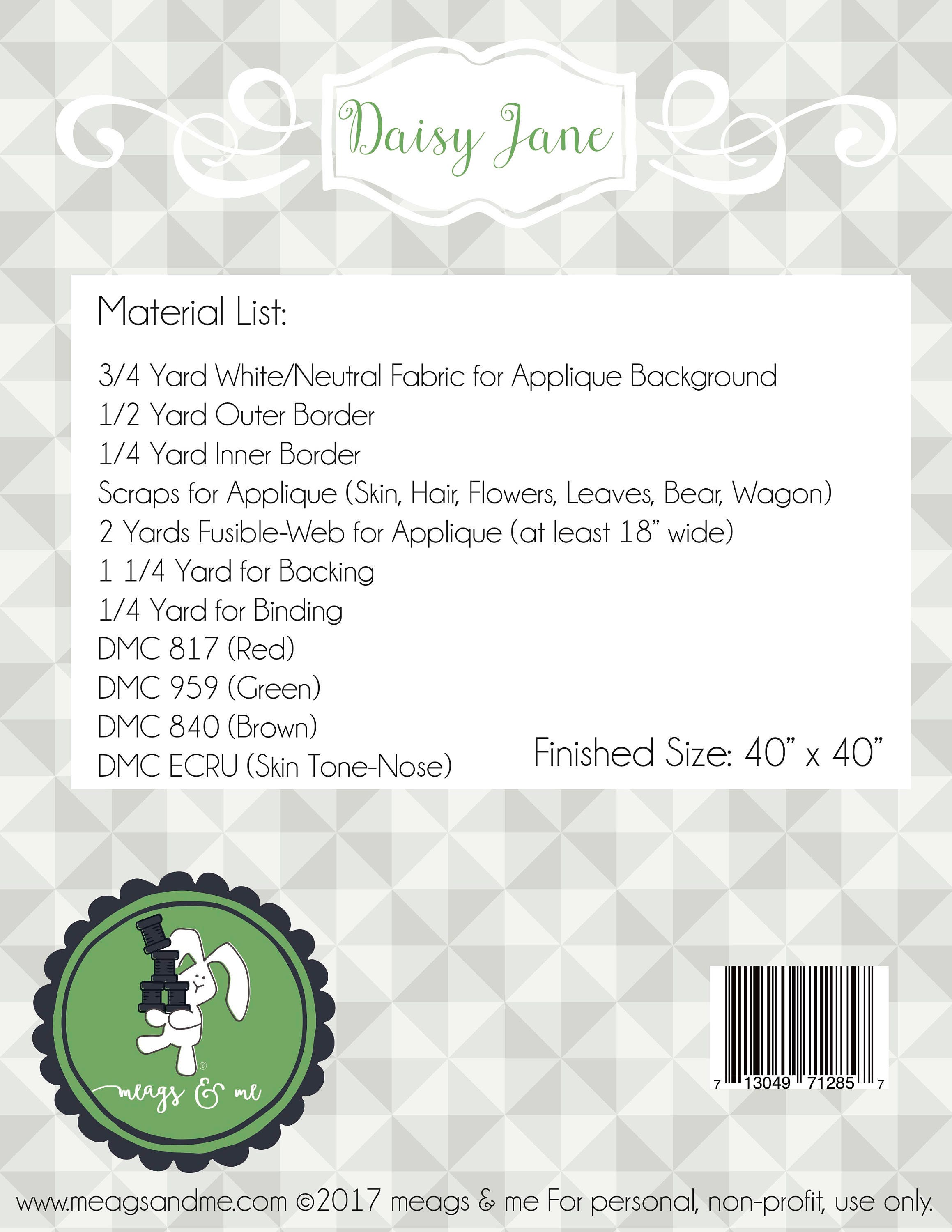 Hard Copy Pattern Daisy Jane Quilt Pattern Embroidery Etsy